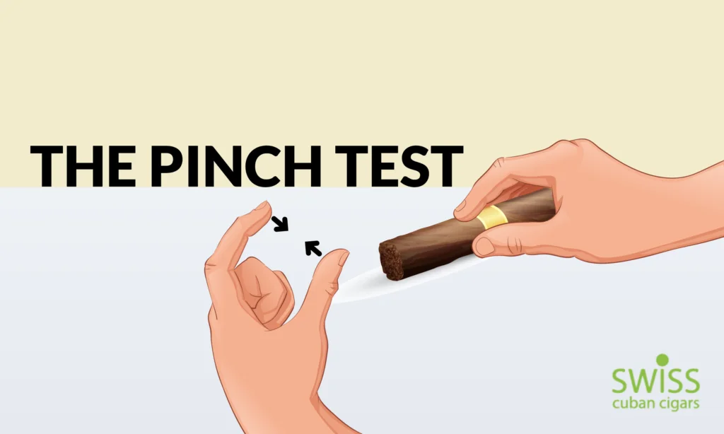 A common term in the cigar industry, the pinch test will be essential knowledge for fixing an over-humidified cigar and for regular maintenance. For those who don’t trust hygrometers or are cigar shopping on the go, the pinch test is always reliable for checking a cigar's freshness. To do the test simply; take your index finger and thumb and gently squeeze the foot, body, and cap of your cigar. A perfectly humidified cigar should feel slightly spongy yet firm, with a little give. If your cigar feels hard or cracks, it’s under-humidified and dry. If your cigar feels very spongy or damp even, it’s over-humidified.