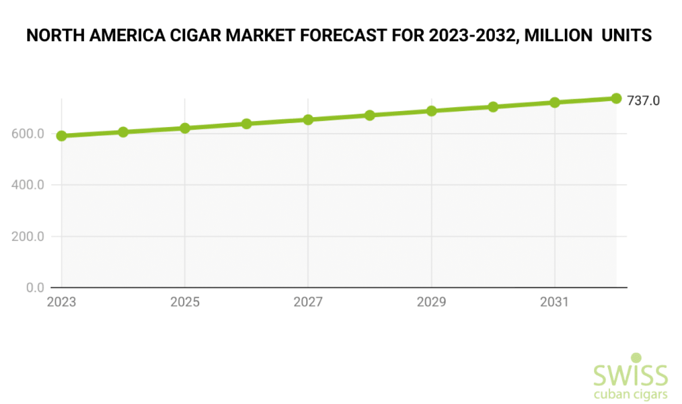 - By 2032, cigar sales in North America are expected to reach 737 million units, up from an estimated 591 million units in 2023.
